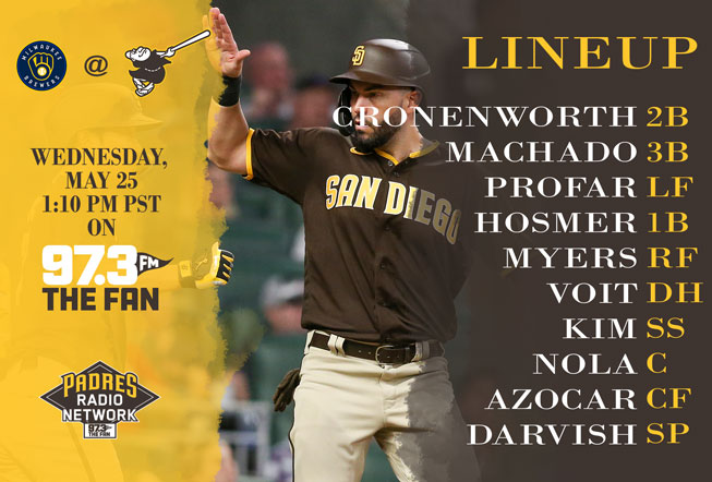 Milwaukee Brewers 115 vs. 10 games will be televised live on FOX Sports San Diego FSSD Audio webcast. Padres defeat Marlins 3-2.